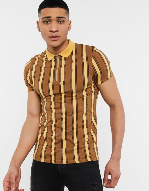 ASOS DESIGN – Brązowa obcisła koszulka polo w paski