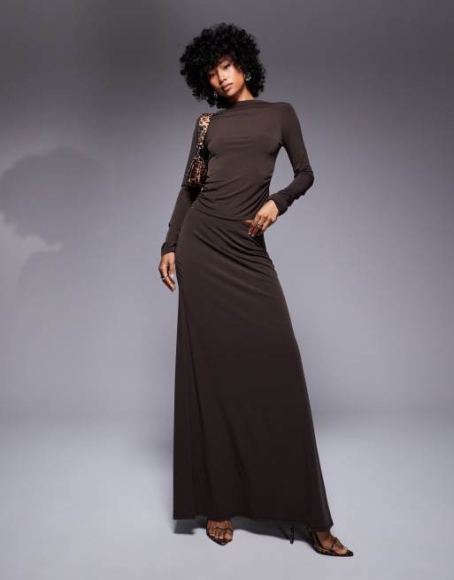 ASOS DESIGN – Brązowa opinająca spódnica maxi z marszczeniem po bokach i godetami, część zestawu