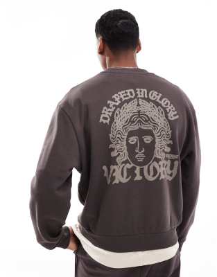 ASOS DESIGN – Brązowa pudełkowa bluza z nadrukiem z przodu i na plecach