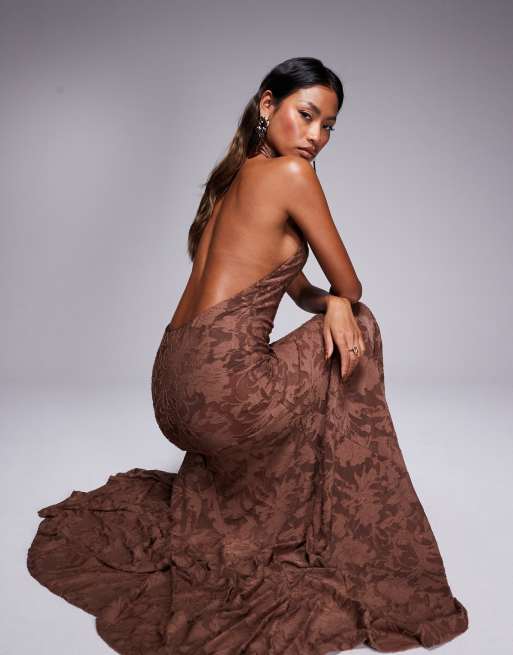 ASOS DESIGN – Brązowa sukienka maxi bez rękawów z golfem w wypalony wzór