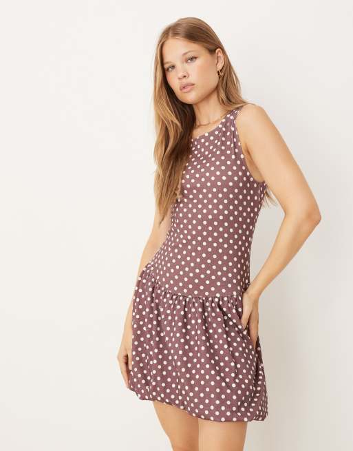 ASOS DESIGN– Brązowa sukienka mini w groszki z bufiastym dołem