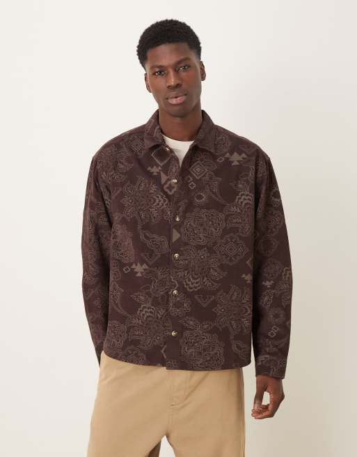 ASOS DESIGN – Brązowa sztruksowa koszula o pudełkowym kroju oversize w kwiatowy wzór