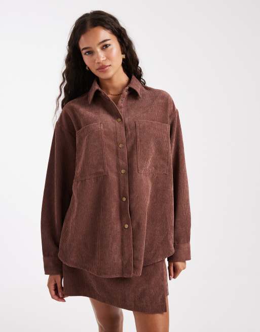 ASOS DESIGN – Brązowa sztruksowa koszula oversize, część zestawu