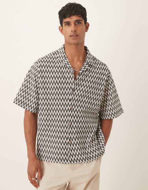 ASOS DESIGN – Brązowa szydełkowana koszula oversize o pudełkowym kroju z kołnierzykiem kubańskim