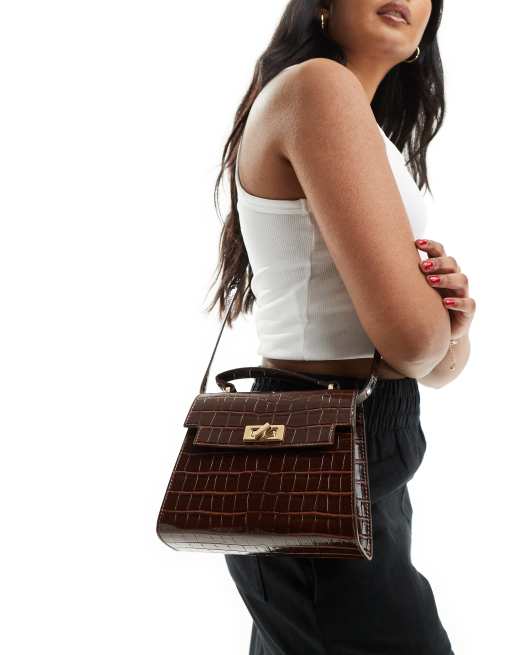 ASOS DESIGN – Brązowa torebka crossbody z rączką i zapięciem obrotowym