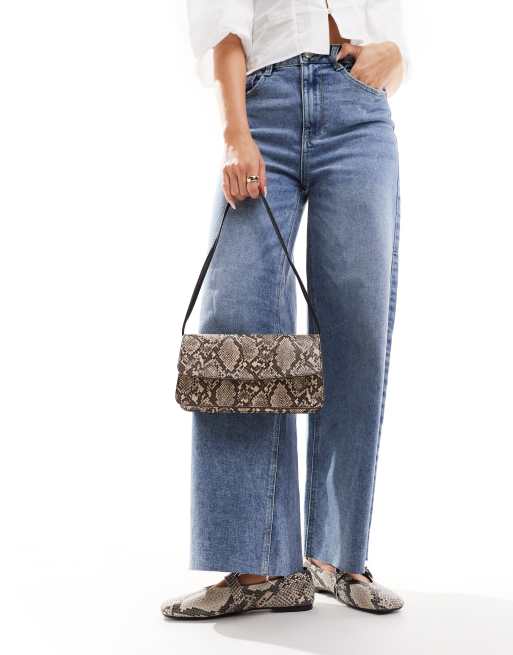 ASOS DESIGN – Brązowa torebka na ramię z wąskim paskiem we wzór skóry węża