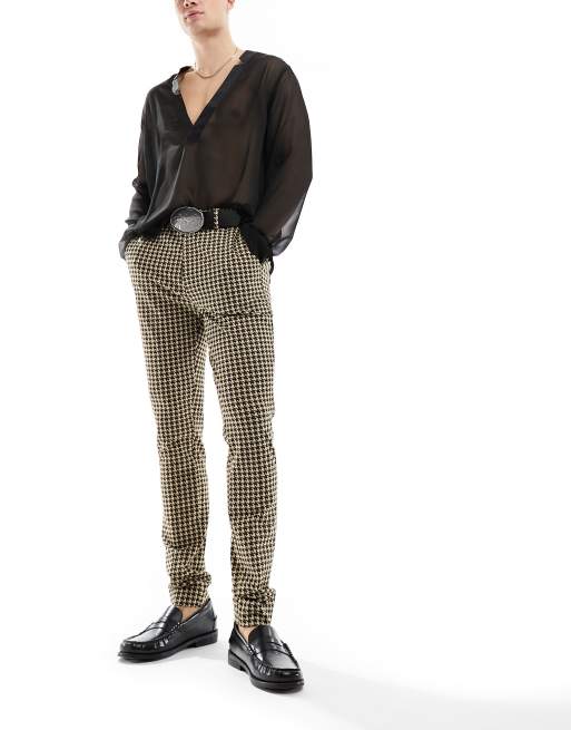 ASOS DESIGN – Brązowe eleganckie spodnie o obcisłym kroju w żakardowy wzór w pepitkę