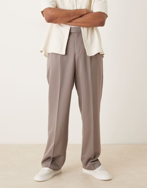 ASOS DESIGN – Brązowe eleganckie spodnie z szerokimi nogawkami i podwójnymi zakładkami