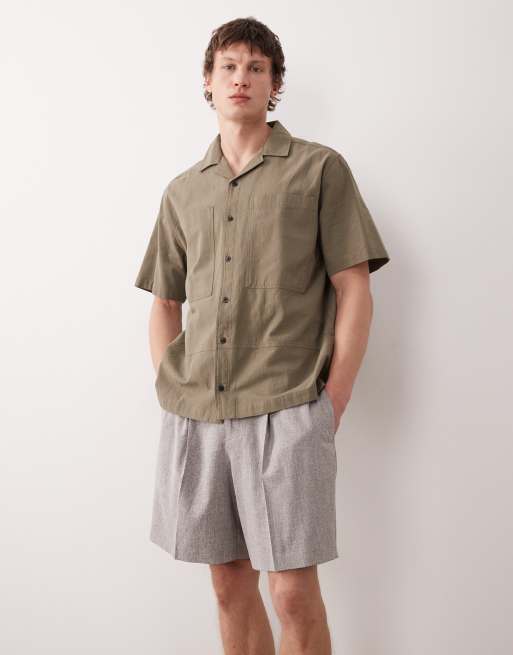 ASOS DESIGN – Brązowe, eleganckie, szerokie szorty o fakturze lnu, z zakładkami