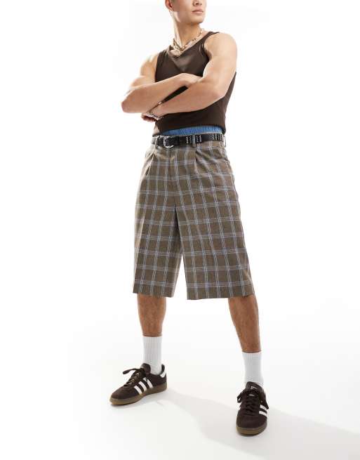 ASOS DESIGN – Brązowe eleganckie szorty o wydłużonym fasonie w kratkę