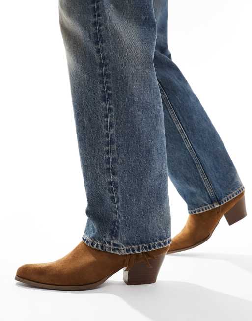 ASOS DESIGN – Brązowe kowbojki z imitacji zamszu z frędzlami