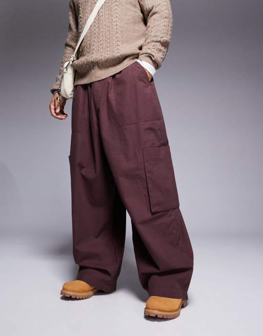ASOS DESIGN – Brązowe luźne bojówki oversize z elastyczną talią