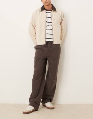 ASOS DESIGN – Brązowe luźne spodnie z imitacji lnu