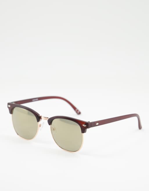 ASOS DESIGN – Brązowe okulary przeciwsłoneczne w stylu retro ze złotymi oprawkami
