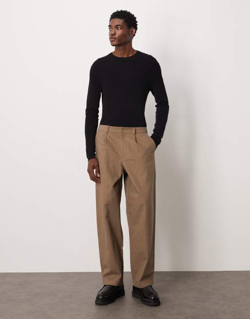 ASOS DESIGN – Brązowe spodnie o luźnym kroju z zakładkami z imitacji zamszu