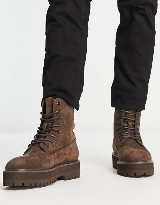 ASOS DESIGN – Brązowe sznurowane botki z imitacji zamszu na grubej podeszwie