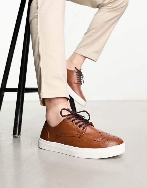 ASOS DESIGN – Brązowe sznurowane brogsy z imitacji skóry