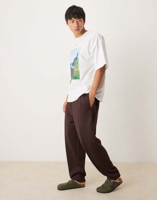 ASOS DESIGN – Brązowe zwężane joggersy z materiału w stylu scuba