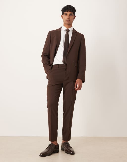 ASOS DESIGN – Brązowe zwężane spodnie garniturowe