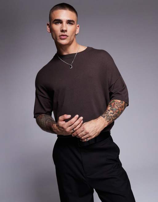 ASOS DESIGN – Brązowy dzianinowy T-shirt o luźnym kroju, część zestawu