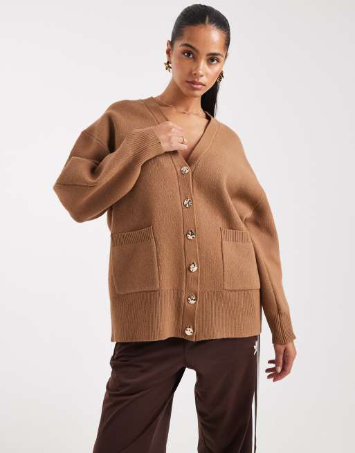 ASOS DESIGN – Brązowy fakturowany kardigan oversize o fasonie boyfriend