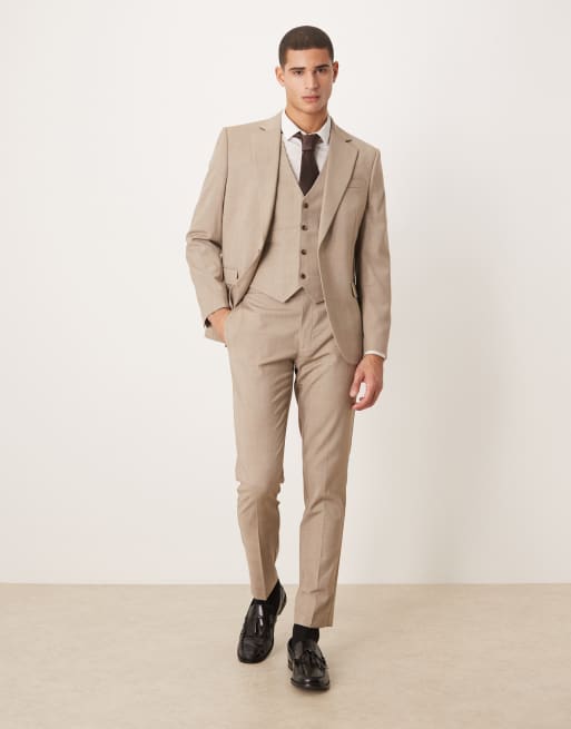 ASOS DESIGN – Brązowy garnitur o obcisłym kroju w kratę