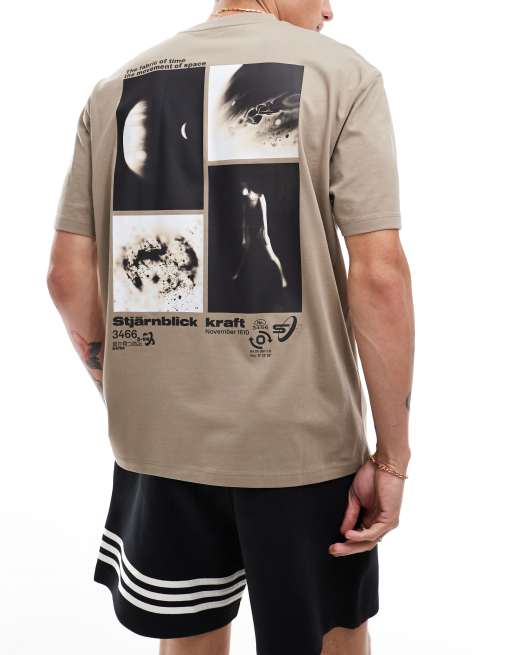 ASOS DESIGN – Brązowy luźny T-shirt z astrologicznym nadrukiem na plecach i efektem sprania