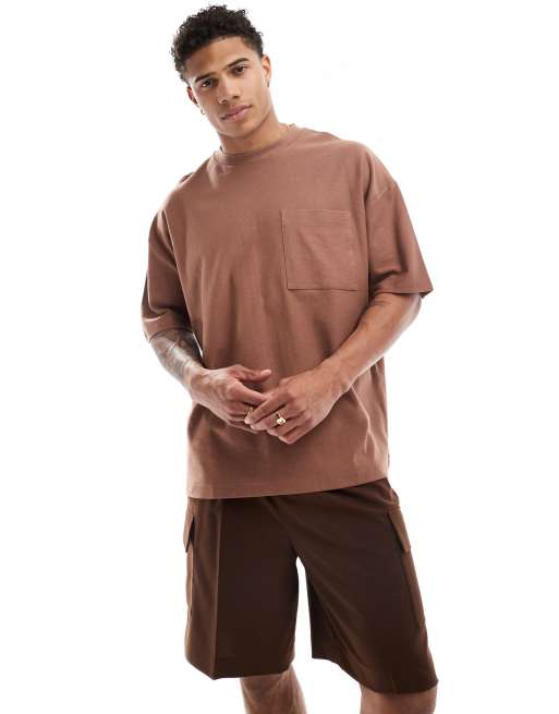 ASOS DESIGN – Brązowy luźny T-shirt z dzianiny boucle