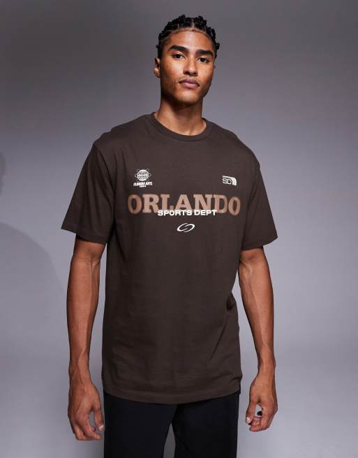 ASOS DESIGN – Brązowy luźny T-shirt z grafiką z motywem miastem