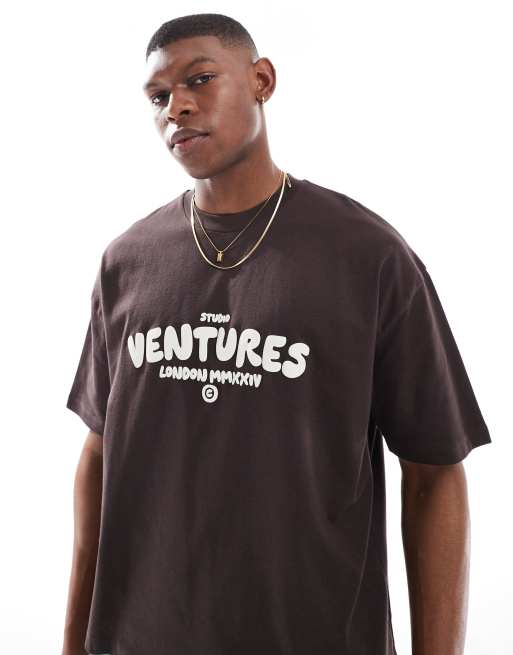 ASOS DESIGN – Brązowy pudełkowy T-shirt oversize z napisem