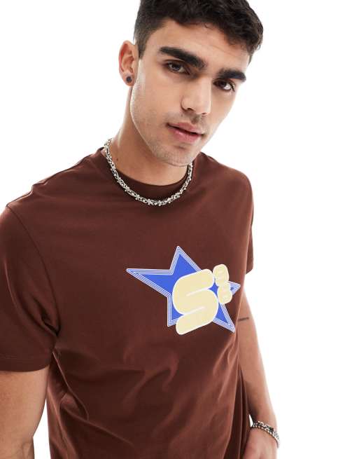 ASOS DESIGN – Brązowy pudełkowy T-shirt z nadrukiem gwiazdy na piersi