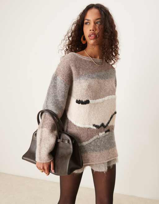 ASOS DESIGN – Brązowy sweter z ręcznie wykonanym wzorem