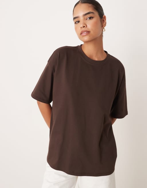 ASOS DESIGN – Brązowy T-shirt o wydłużonym fasonie z grubej bawełny
