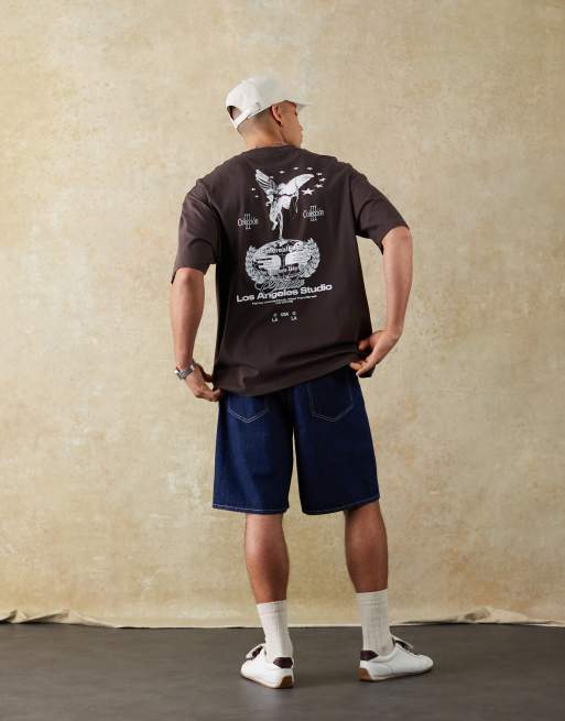 ASOS DESIGN – Brązowy T-shirt oversize z grafiką