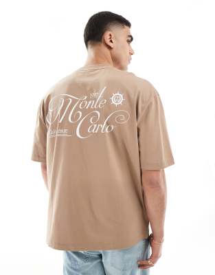 ASOS DESIGN – Brązowy T-shirt oversize z nadrukiem na plecach