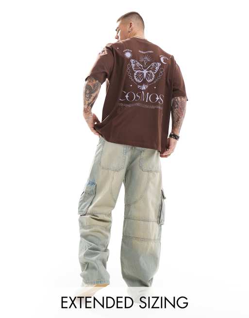 ASOS DESIGN – Brązowy T-shirt oversize z nadrukiem na plecach