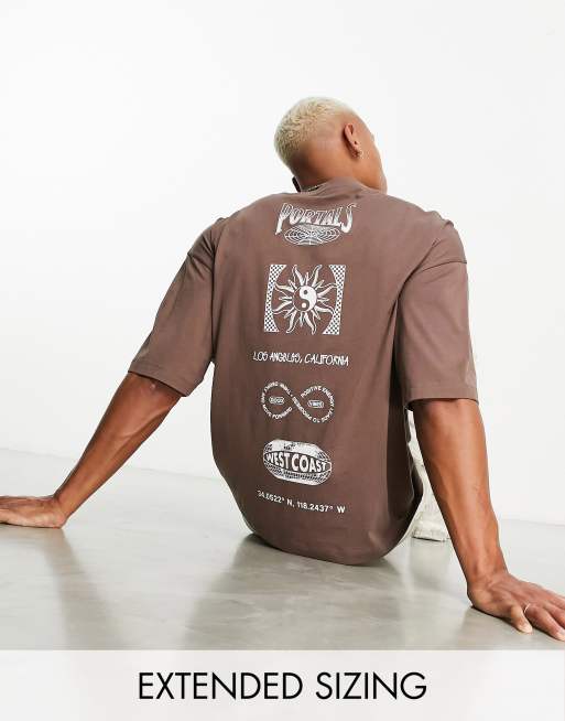 ASOS DESIGN – Brązowy T-shirt oversize z gwiaździstym nadrukiem na środku tyłu