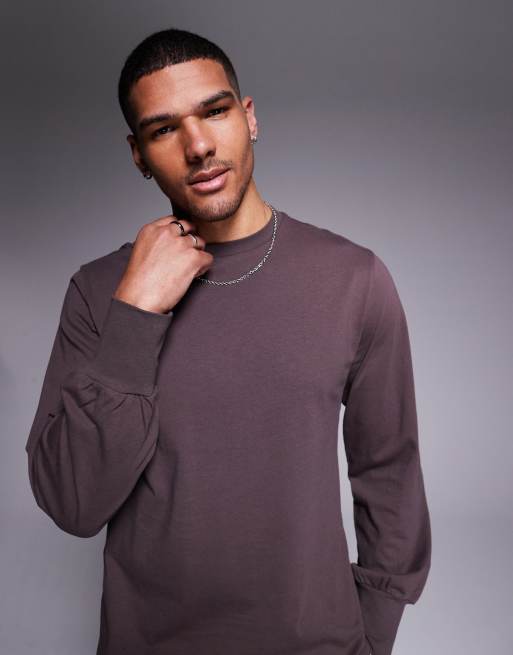 ASOS DESIGN – Brązowy T-shirt z okrągłym dekoltem i długimi rękawami z szerokimi ściągaczami