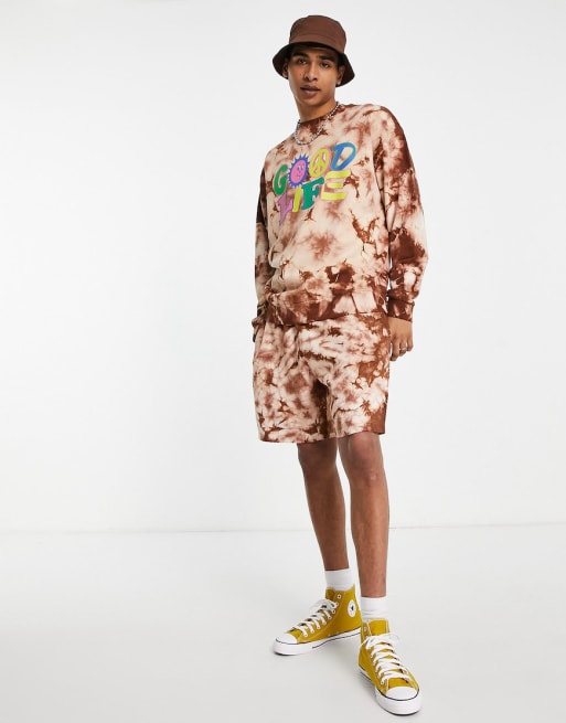 ASOS DESIGN – Brązowy zestaw oversize z efektem tie-dye i napisem