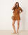 ASOS DESIGN – Brązowy zestaw z imitacji zamszu: pudełkowa koszula z krótkimi rękawami i spódnica mini