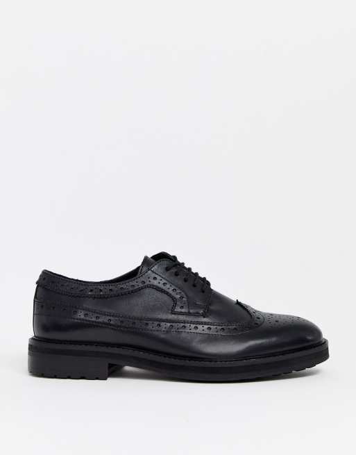 ASOS DESIGN – Brogsy z czarnej skóry na grubej podeszwie