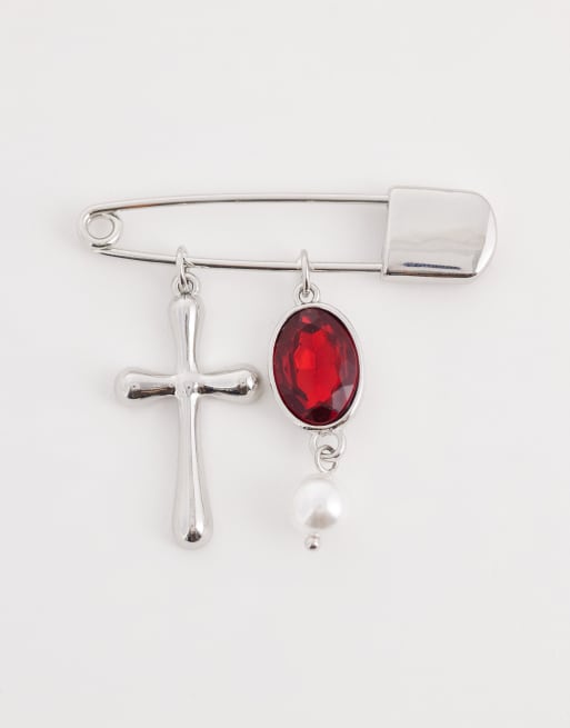 ASOS DESIGN – Broszka w kolorze srebra z krzyżykiem i kamieniami