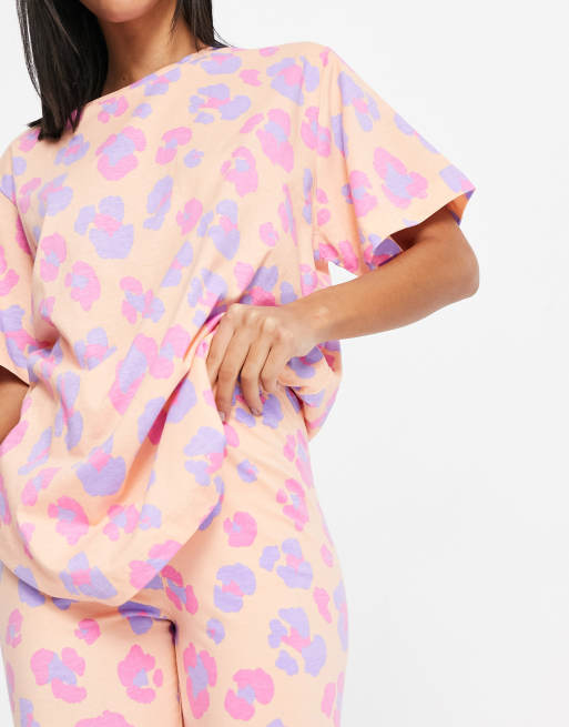 ASOS DESIGN – Brzoskwiniowa piżama w panterkę: koszulka oversize i legginsy