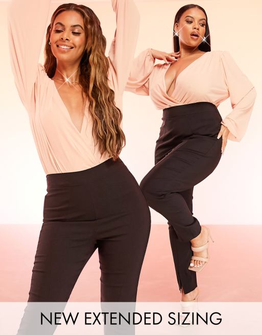 ASOS DESIGN – Brzoskwiniowe body z szerokimi rękawami i głębokim dekoltem