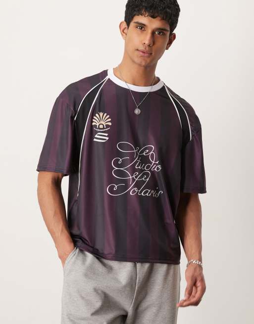 ASOS DESIGN – Burgundowy T-shirt oversize z obniżoną linią ramion i lamówkami, w paski