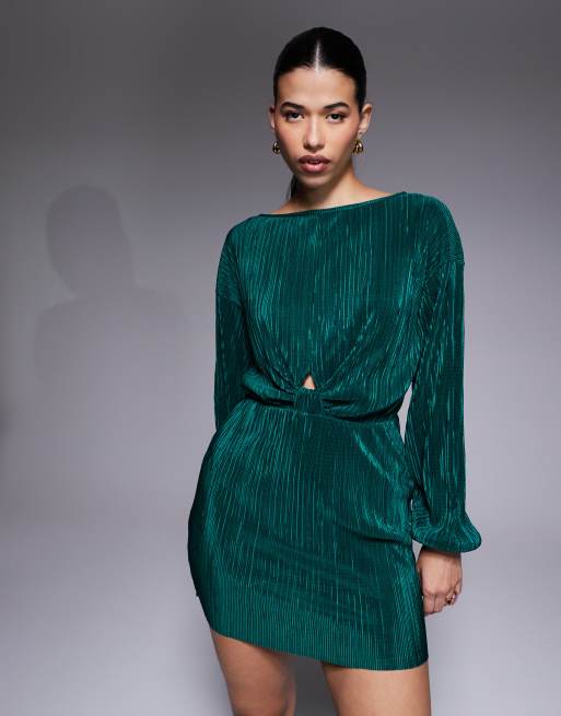 ASOS DESIGN – Butelkowozielona plisowana sukienka mini ze skręconym przodem