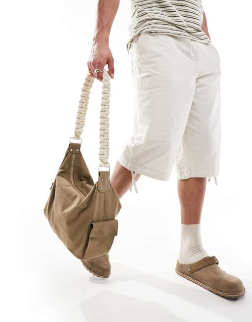 ASOS DESIGN – Camelowa duża bawełniana torebka ze sznurkowym paskiem