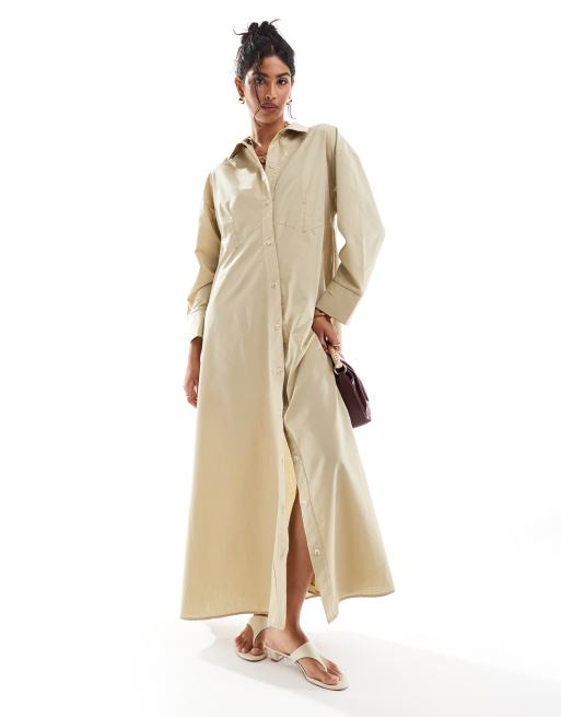 ASOS DESIGN – Camelowa sukienka koszulowa maxi oversize z podwójnymi szwami w talii