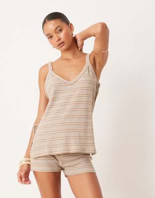 ASOS DESIGN – Camelowy top na ramiączkach z fakturowanej dzianiny w paski, część zestawu