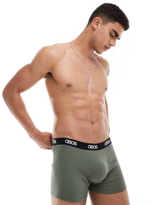 ASOS DESIGN – Capsule Collection – Prążkowane ciemnozielone bokserki